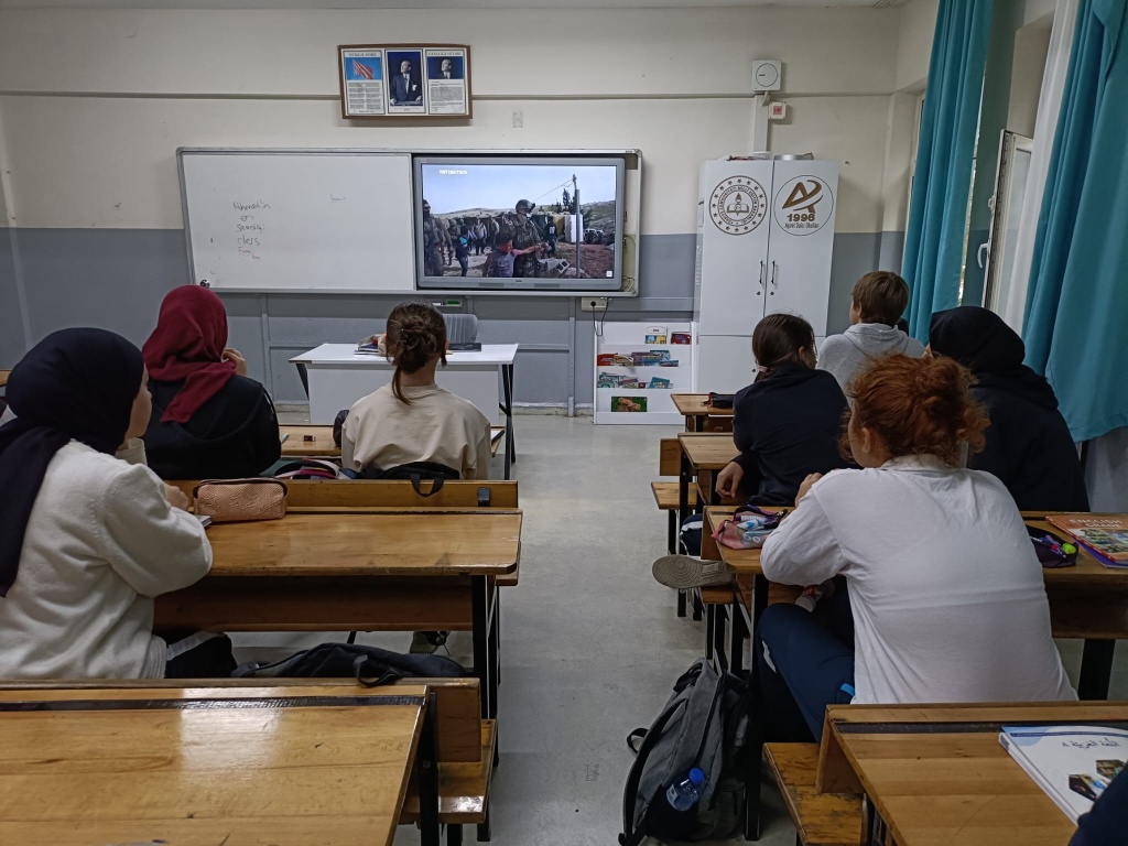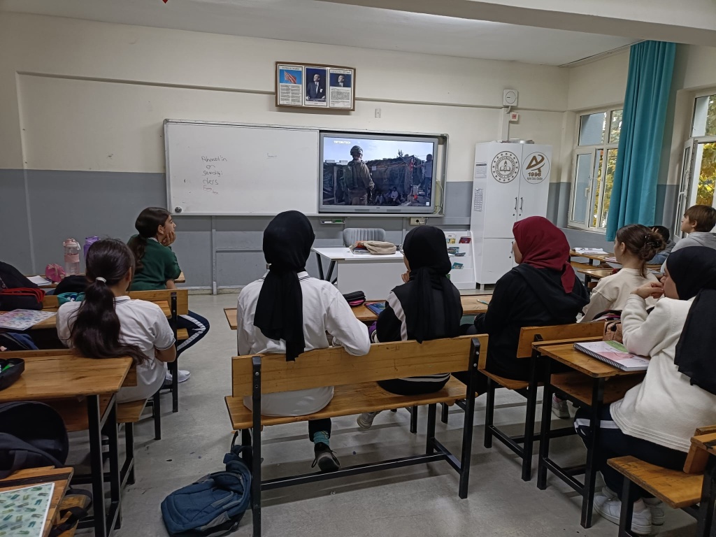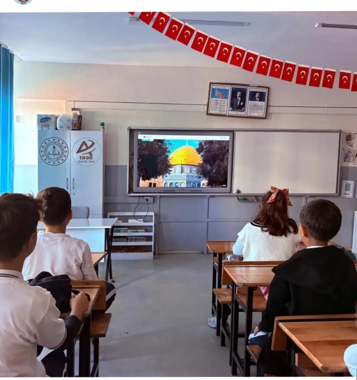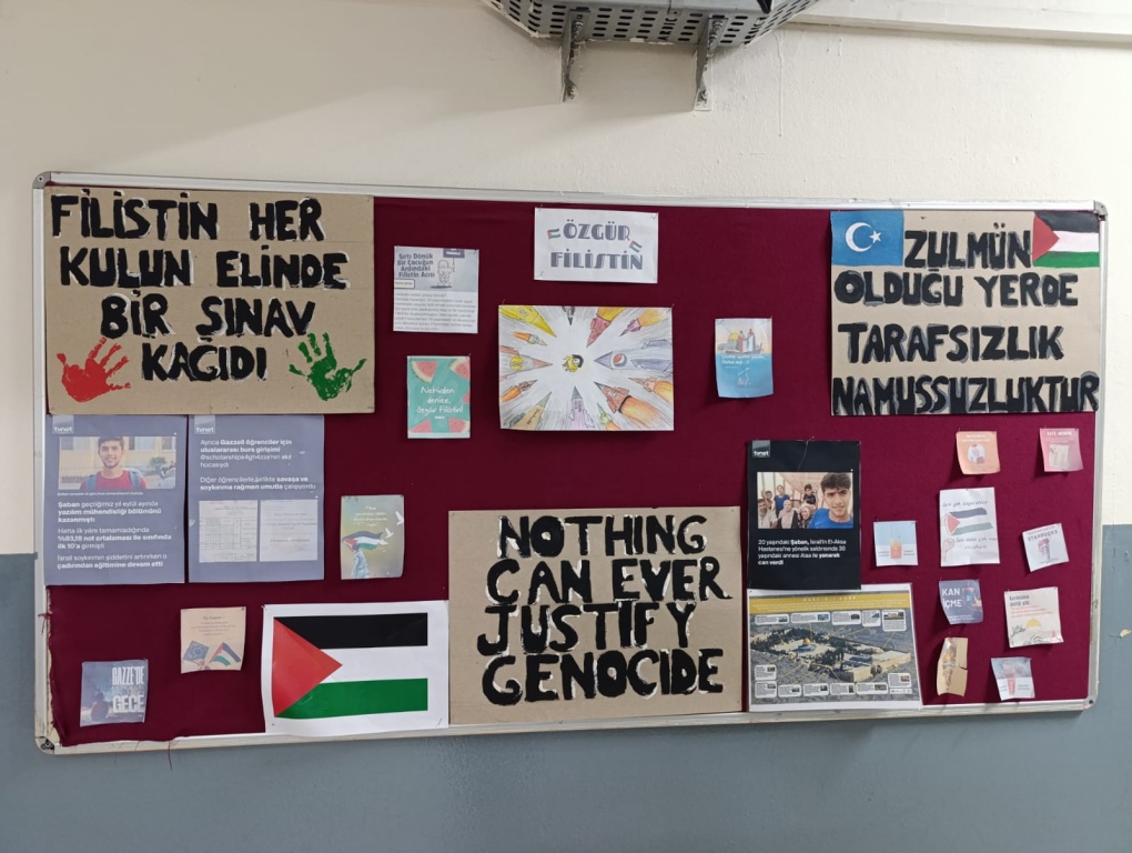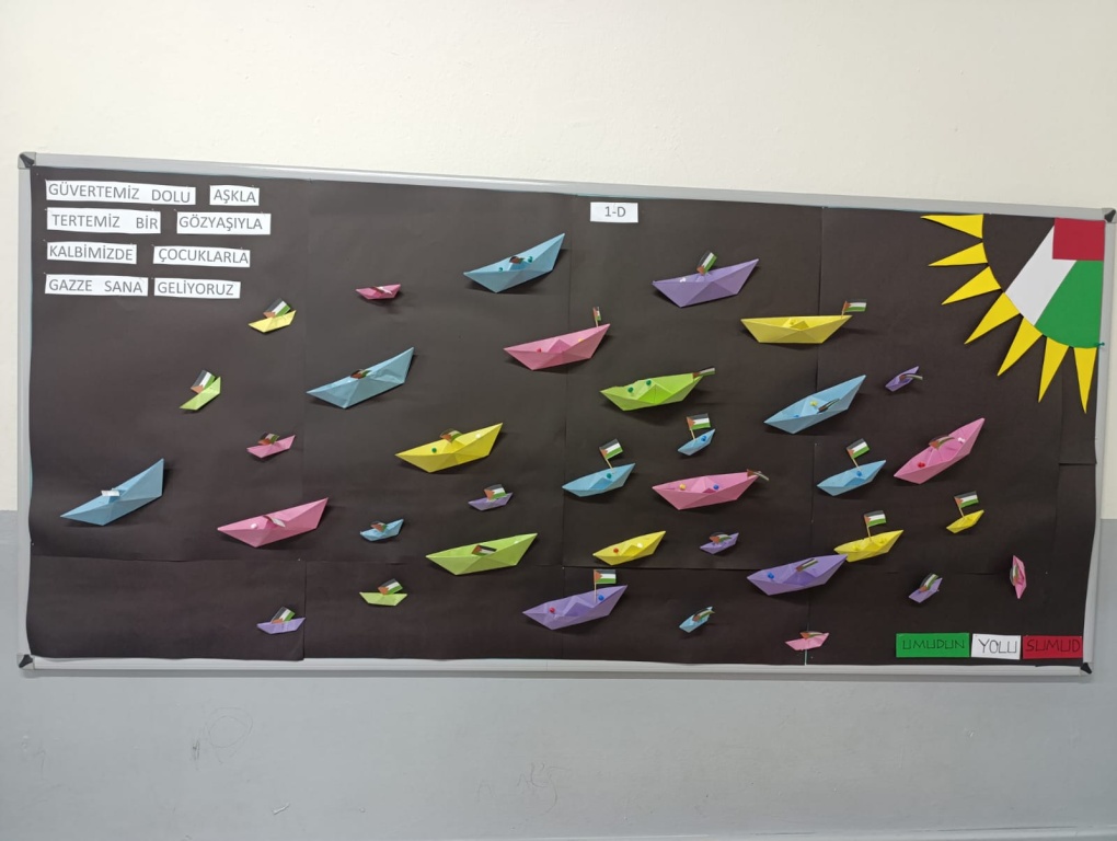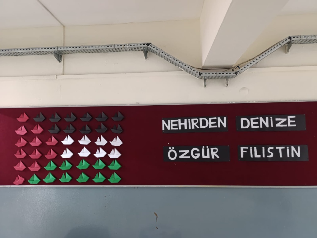 Öğrencilerimiz İsrail saldırıları sonucu Filistin'de yaşanan katliam ve yıkıma dikkat çekmek için mektup ve şiirler yazdı, resimler çizdi.Sınıflarımızda videolar izletildi.