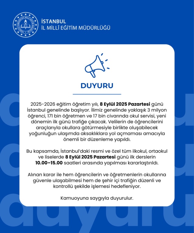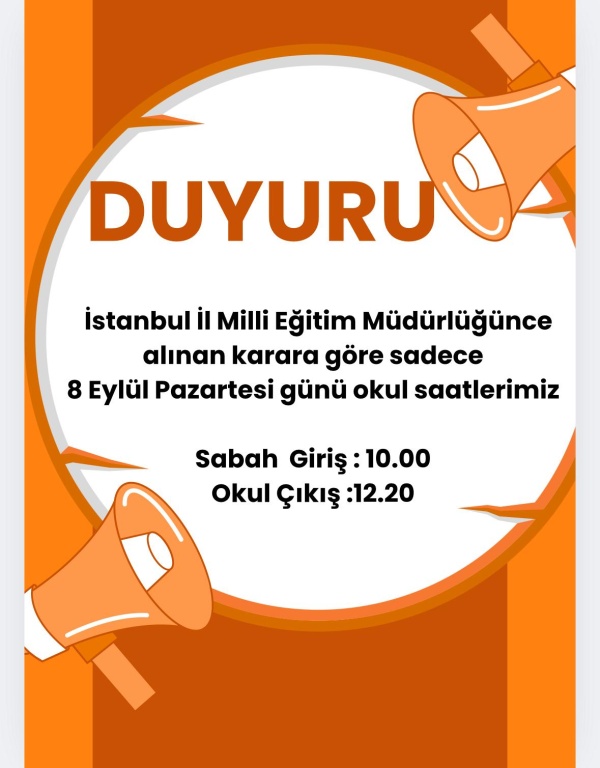 Sadece 8 Eylül Pazartesi günü için geçerli olan okul saatlerimiz.